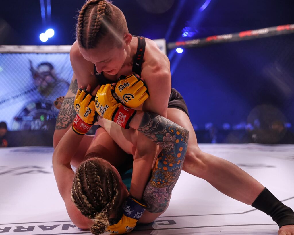 Six months after giving birth, she was ready to try something new. It was then, with her husband’s encouragement, that she began her martial arts journey. With no previous martial arts experience, she began training once a week for fitness and fun. After a year, she began competing in local interclubs with the encouragement of her coach, Mark Kelly. Even before her first interclub, she was quietly dreaming of fighting professionally in front of a global audience. Her amateur career began a few months later and her commitment to and love for the sport has only grown since that time. In her 12-month amateur career Lindsey had many dominant performances and Lindsey was ready for her next challenge, she went on to make her professional debut.